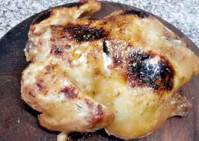 - Cover chicken with alluminium foil,you will have sauce left in the bowl,save it...now roast at 180c for 1hour and 20 minutes ,then open foil and roast it 15 more mins,to brown skin ...